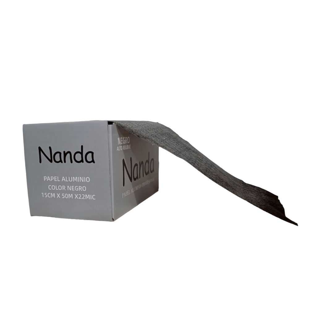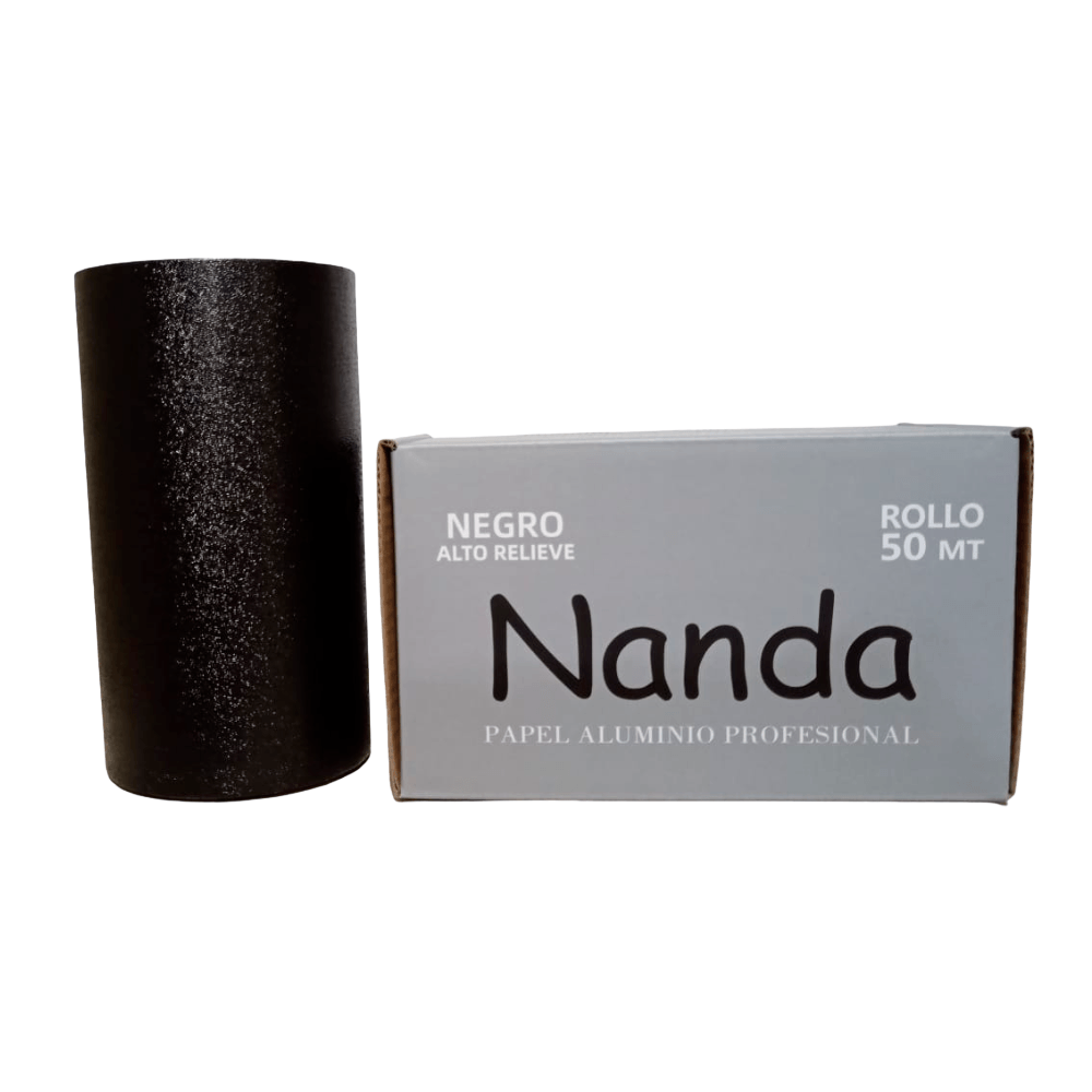 Papel aluminio alto relieve negro, Rollo de 15 cm de ancho x 50 metros de largo x 22 micras, es resistente y reutilizable, caja con cortador para cortar el largo que desee.