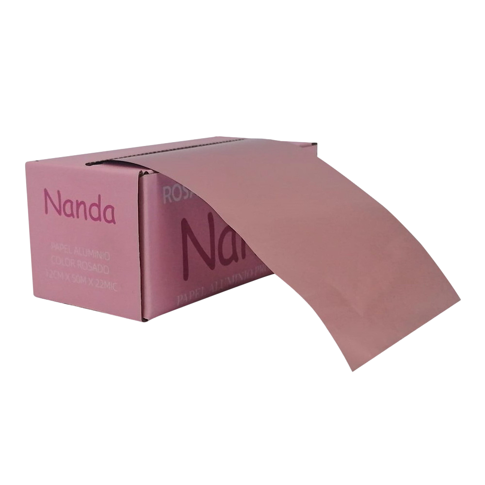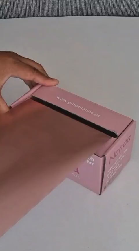 Papel aluminio liso rosado, Rollo de 15 cm de ancho x 50 metros de largo x 22 micras, es resistente y reutilizable, caja con cortador para cortar el largo que desee.